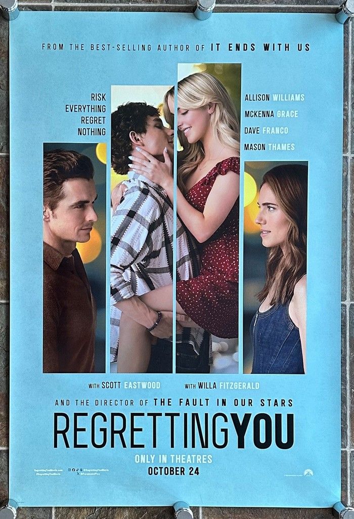 This is the US Advance Style poster for the 2025 romantic comedy film - "REGRETTING YOU" - starring ALLISON WILLIAMS, MCKENNA GRACE and DAVE FRANCO. This is an original 1-Sheet and it measures approx. 27 x 40 inches in size. The poster is rolled and in NM condition. It is 2-Sided, NEVER BEEN USED and has been stored in a dry, smoke-free home.