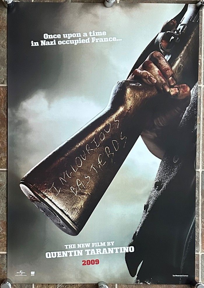 "ONCE UPON A TIME IN OCCUPIED FRANCE...." This poster is the US Advance Style "B" or the "rifle" style. It is an original 1-sheet that measures approx. 27 x 40 inches in size. It is rolled and in NM condition. It is 2-sided and has been stored in a dry, smoke-free home. Nice item for QUENTIN TARANTINO fans and collectors!