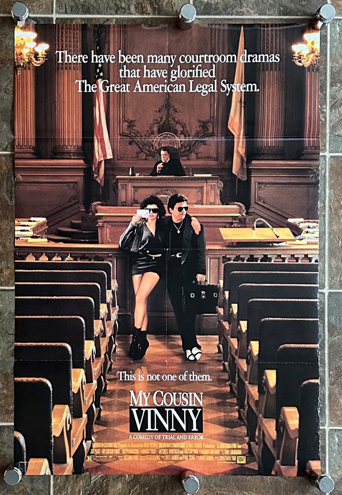 This poster is the US Final Style. It is an original 1-Sheet that measures approx. 27 x 40 inches in size. It is folded, 2-sided and in VG to near mint condition. There are some border dings on the lower right-hand side but nothing major. Nevertheless, I have priced it accordingly. It has been stored in a dry, smoke-free home. Great item for "MY COUSIN VINNY" fans and collectors! |
