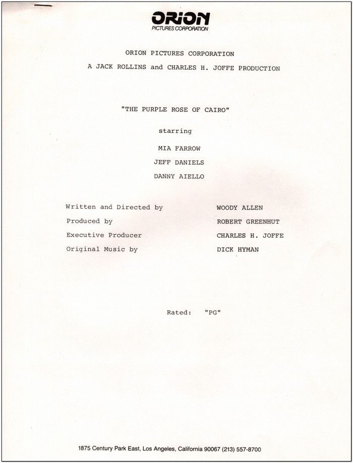 Purple Rose of Cairo - 1985 - Press Kit