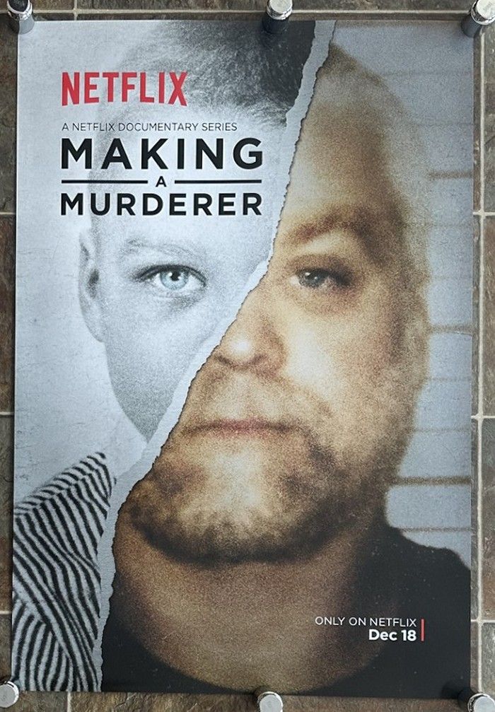 This is an original television poster for the Netflix streaming series - "MAKING A MURDERER". This is an original 1-Sheet and it measures approx. 27 x 40 inches in size. The poster is rolled and in near mint, unused condition. It is DOUBLE-SIDED and has been stored in a dry, smoke-free home. NOT A CHEAP VIDEO POSTER OR A WORTHLESS REPRINT BUT A BEAUTIFUL AUTHENTIC THEATRICAL MOVIE POSTER. |