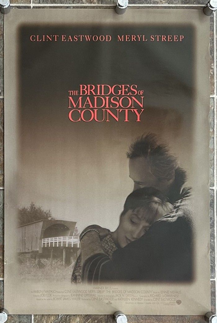 This poster is the US Regular Style poster. It is an original 1-sheet poster that measures approx. 27x40 in size. It is rolled, in VG to near mint condition. There is one spot of wear near the lower left border where the poster rubbed off a little. Nothing bad but see the close up picture. It is a 2-sided poster and has been stored in a dry, smoke-free home. NOT A CHEAP REPRINT OR VIDEO STORE POSTER BUT AN ORIGINAL PIECE OF THEATRICAL MOVIE MEMORABILIA. Nice item for Clint Eastwood and/or Meryl Streep fans and collectors! |