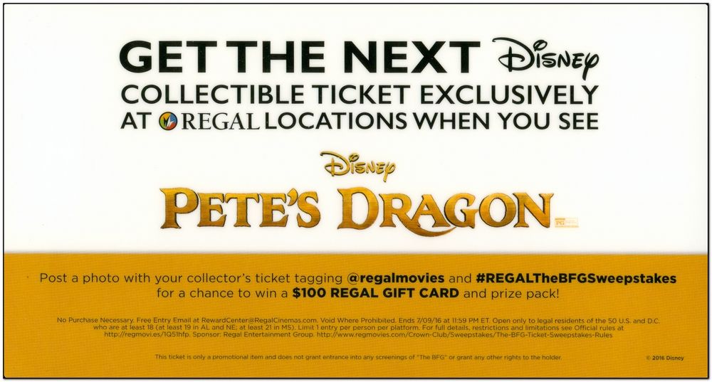 This is a Regal Collectible Ticket from the 2016 Disney movie - "BFG" - starring MARK RYLANCE and REBECCA HALL. This souvenir collectible ticket is a limited-edition, physical movie ticket issued by Regal Cinemas. Unlike a standard paper or mobile ticket, it’s a premium, keepsake item made of plastic and featuring unique artwork tied to the film. The ticket features exclusive artwork not used on the regular movie poster. A cool and unique item for STEVEN SPIELBERG fans!! (*** Please note: the photo I used shows ticket #4246 of 5000. Since I have a lot of these and sell a lot of these, the number on the ticket you receive may be different.)